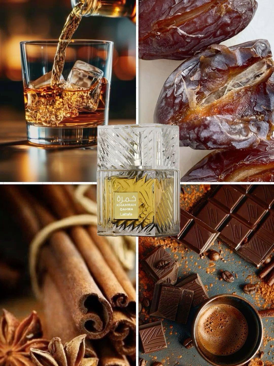 Descubre el irresistible encanto de Khamrah, una fragancia unisex única que envuelve tus sentidos con su exquisita combinación de especias y dulzor.